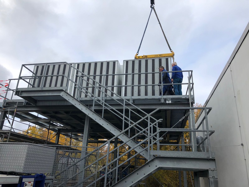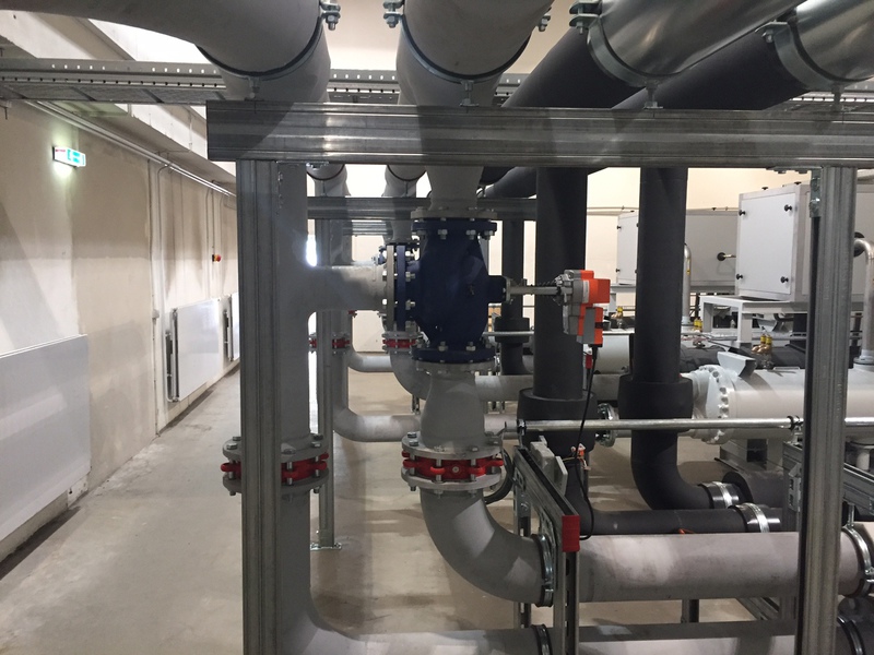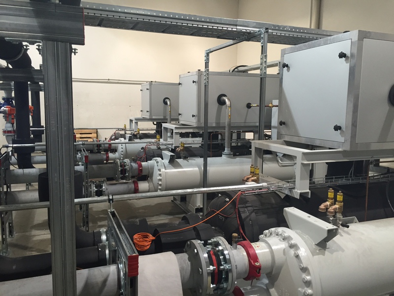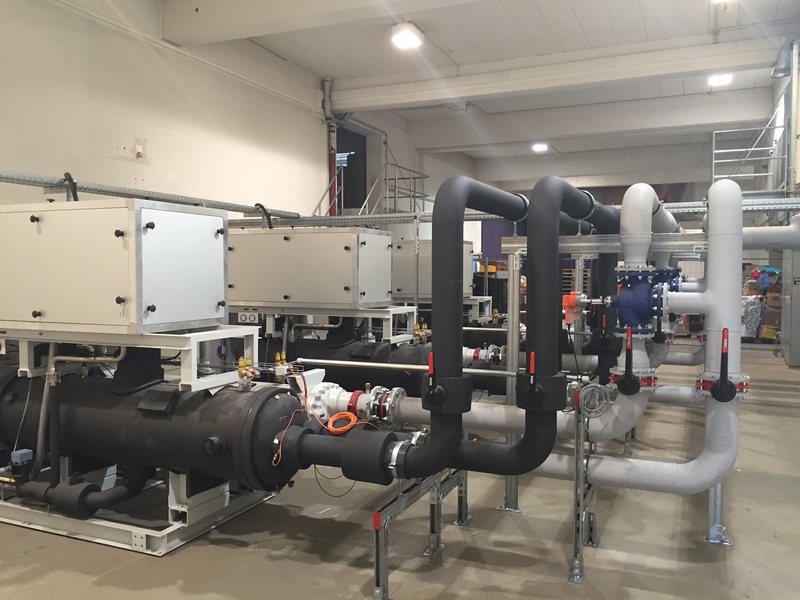 3 x 400 kW Turbo-Kaltwassersätze, wassergekühlt durch bauseitig vorhandene Kühltürme 2,5 Megawatt